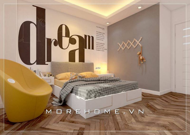 Giường ngủ bé trai hiện đại, gia chủ lựa chọn gam màu xám nhạt tạo điểm nhấn nhẹ nhàng cho cả căn phòng