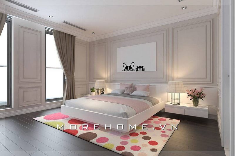 Mẫu giường ngủ trẻ em hiện đại, tone màu trắng chủ đạo cùng màu với nội thất khác trong căn phòng tạo sự liền mạch cho cả không gian căn phòng