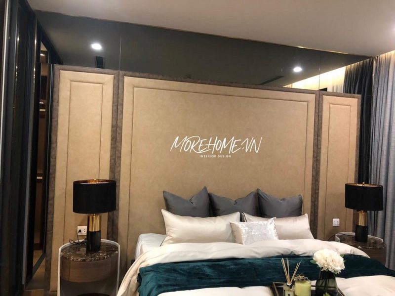 Morehome đã thực hiện hình ảnh thi công thực tế của phòng ngủ chung cư theo phong cách hiện đại.